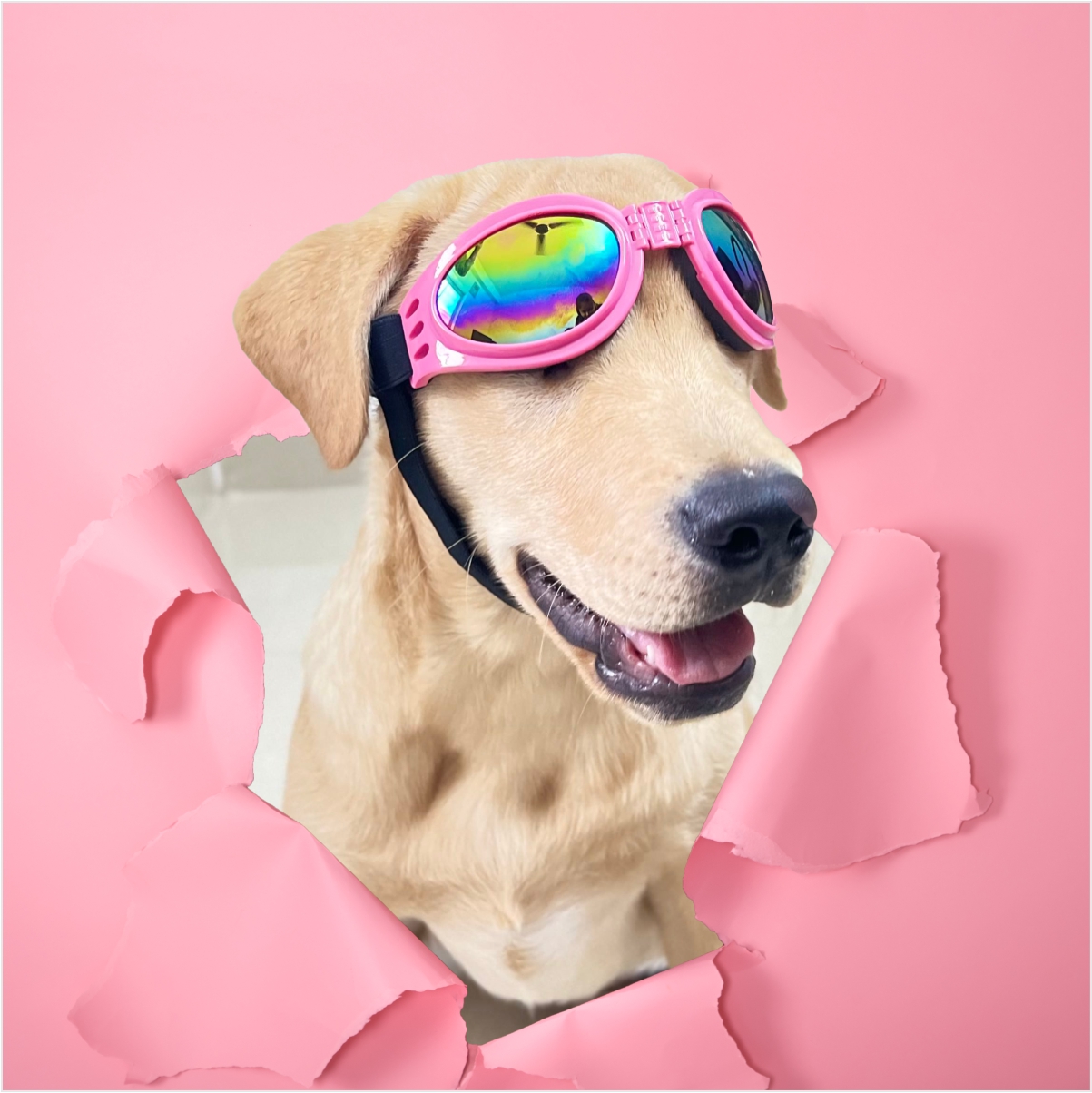 - When you first put the goggles on your dog, don’t let him paw at the glasses or roll to get them off. Reassure him that it’s okay. Take him immediately to bright sunlight and let him realize he can see with them. Walk around, get his mind off the goggles.