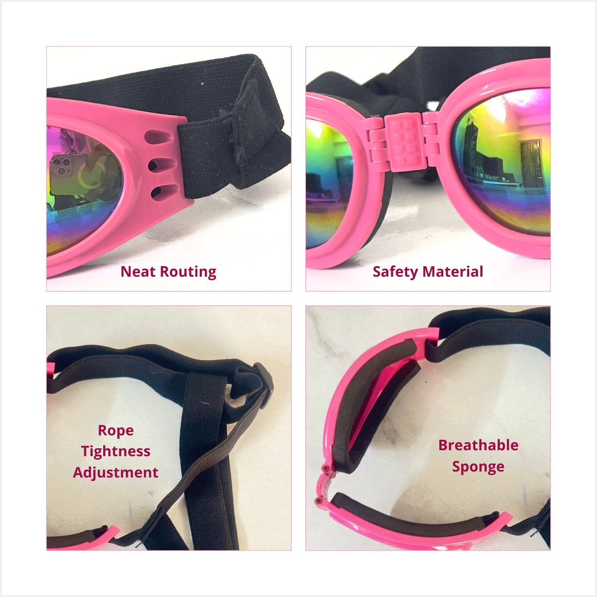 My dog was diagnosed with Pannus – which I have yet to get a second opinion, but in the meantime I needed to find a way to protect her eyes from the sun. These goggles are AMAZING! They are high quality and fit her small 6.7 lb head. They stay on.