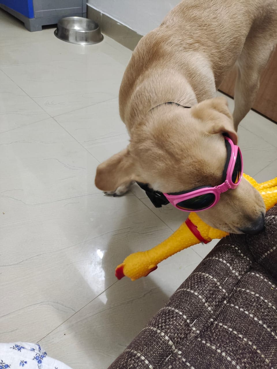 She’s look gorgeous in this sunglasses. Value for money. It’s protect dog sensitive eye outside from dust partical. Must buy.