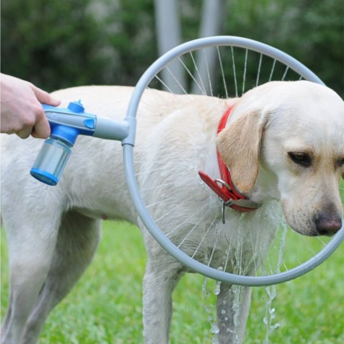 - INSTANT SUDSY SOLUTION: The usage is so simple. All you need is to add shampoo, slip the hoop over your dog, and turn on the hose. Both the water & soap get mixed instantly, creating a sudsy solution to scrub your pup clean from head to tail.